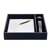 Black Leather Conference Room OrganizerElegant enough to place in the center of a conference table, this Dacasso® Leather Organizer will keep office essentials neatly organized and within reach. The hinged lid feature conceals the small compartments, keeping a streamlined and clutter-free look. Both lids are padded, to add...