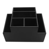 Black Leatherette Multi-Purpose Desk Supply OrganizerThis black leatherette multi-purpose desk organizer is designed to hold eight 4 round or square coasters. It's also designed to hold paper clips, pens, sticky notes and much more. The interior compartments and bottom are lined with soft velveteen. Coasters are not included. Your...
