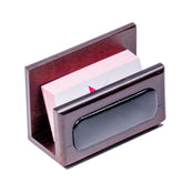 Walnut & Black Leather Business Card HolderStop digging through drawers and pockets in search of a business card! This beautiful, luxurious business card holder is a great way to keep your cards close at hand, crease-free, and proudly displayed. The unique, high-end style of this walnut-stained wood and black top-grain...