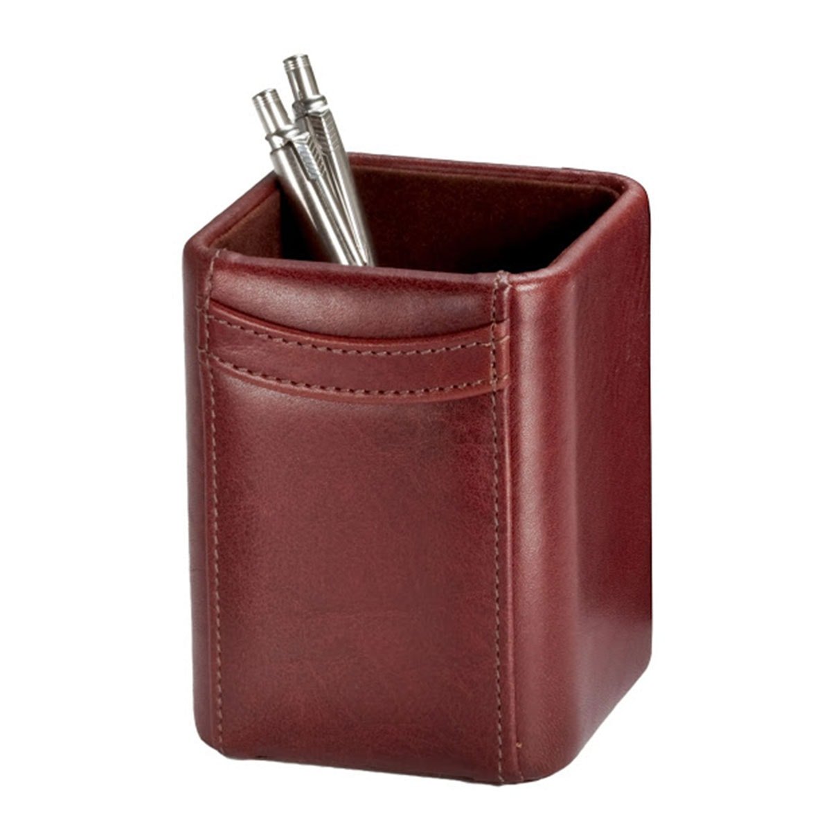 Upgrade your office today in one simple step with this complete leather desk set! This coordinating set features a classic design and beautiful mocha top-grain leather. Easily get a tailored look that's high-end and professional, and never out of style. We've included the most important organizing essentials, so you'll have the tools you need to stay organized, and a coordinated look that's sure to impress.